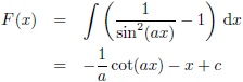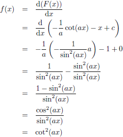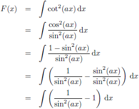 Trefwoorden/keywords: integraal/integral, integreren/integrate, f (x) = cot2 (ax)