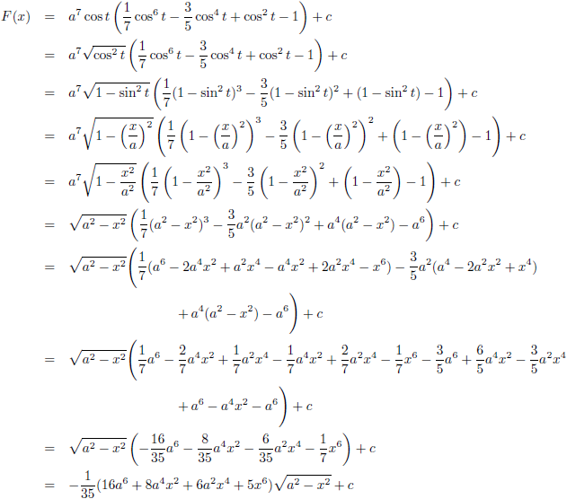 Trefwoorden/keywords: integraal/integral, integreren/integrate, f (x) = x7/(a2 − x2)1/2