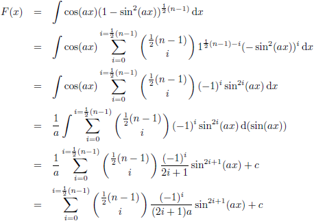 Trefwoorden/keywords: integraal/integral, integreren/integrate, f (x) = cosn (ax) (n = odd)