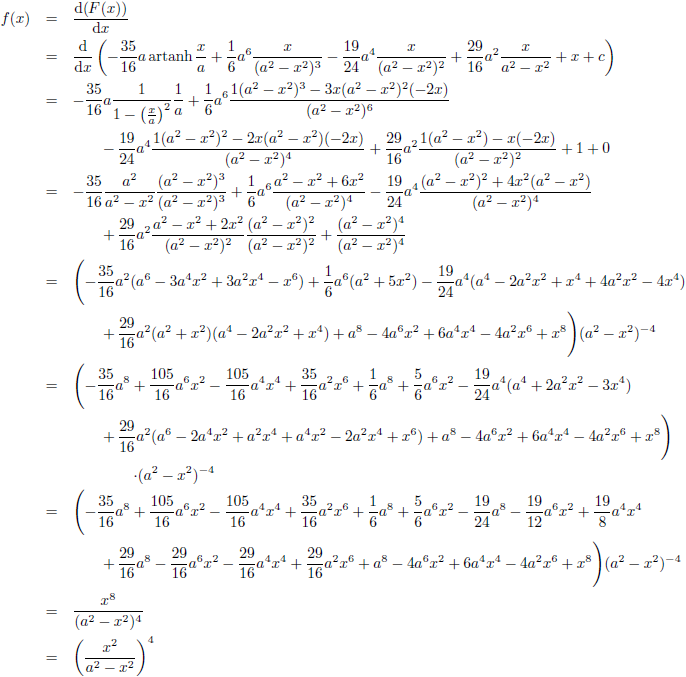 Trefwoorden/keywords: integraal/integral, integreren/integrate, f (x) = (x2/(a2 − x2))4