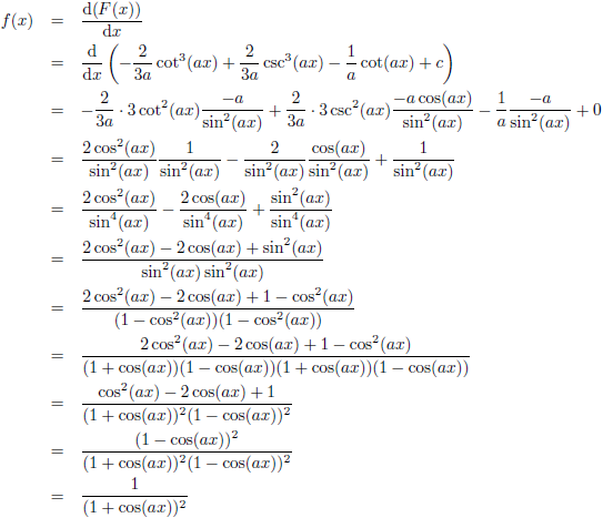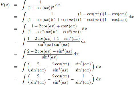 Trefwoorden/keywords: integraal/integral, integreren/integrate, f (x) = 1/(1 + cos (ax))2