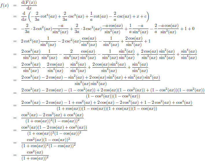 Trefwoorden/keywords: integraal/integral, integreren/integrate, f (x) = cos2 (ax)/(1 + cos (ax))2