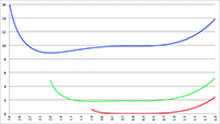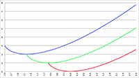 p = 1 (de oranje lijn), p = 2 (de groene lijn),