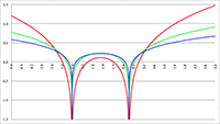 f (x) = x2 ∙ 1/(x2 + 2x + 1) (de groene lijn), f (x) = x−2 ∙ 1/(x2 + 2x + 1) (de paarse lijn),