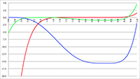 f (x) = x (x + 1)3 (de groene lijn), f (x) = x (x + 3)3 (de paarse lijn),