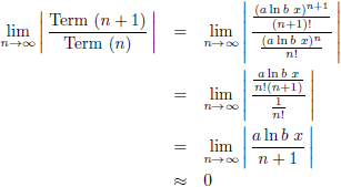 Het uitdoven van de termen begint namelijk pas wanneer n + 1 > | a ln b x |, oftewel n > | a ln b x | − 1.