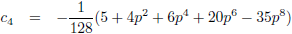 50 termen (de grijze lijn) en 100 termen (de lichtblauwe lijn), p = 2