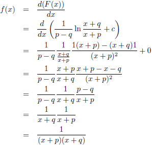 Trefwoorden/keywords: integraal/integral, integreren/integrate, f (x) = 1/((x + p) (x + q))