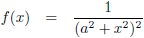 De grafiek van f (x) = 1/(a2 + x2)2 voor a = 1 (de rode lijn),