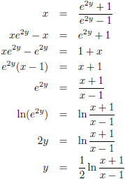 Ik ga de inverse functie omschrijven zodat y weer geschreven wordt als functie van x: