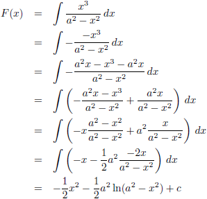 Trefwoorden/keywords: integraal/integral, integreren/integrate, f (x) = x3/(a2 − x2)