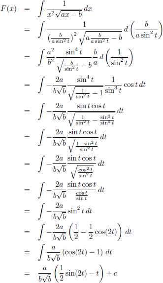 Trefwoorden/keywords: integraal/integral, integreren/integrate, f (x) = 1/(x2 (ax − b)1/2)