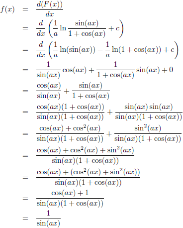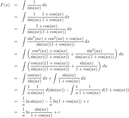 Trefwoorden/keywords: integraal/integral, integreren/integrate, f (x) = 1/sin (ax)