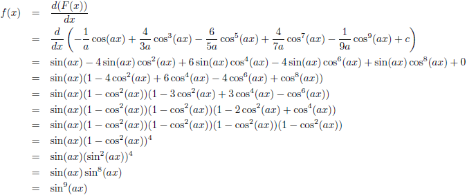 Trefwoorden/keywords: integraal/integral, integreren/integrate, f (x) = sin9 (ax)