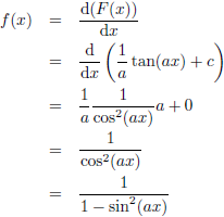 Trefwoorden/keywords: integraal/integral, integreren/integrate, f (x) = 1/(1 − sin2 (ax))