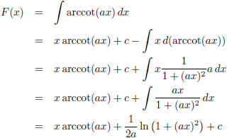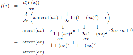 Trefwoorden/keywords: integraal/integral, integreren/integrate, f (x) = arccot (ax)