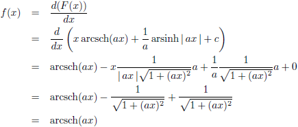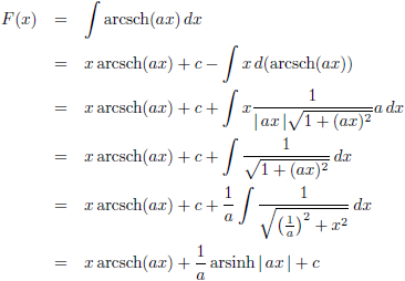 Trefwoorden/keywords: integraal/integral, integreren/integrate, f (x) = arcsch (ax)