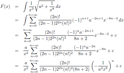 Trefwoorden/keywords: integraal/integral, integreren/integrate, f (x) = 1/x3 (a2 + 1/x8)1/2