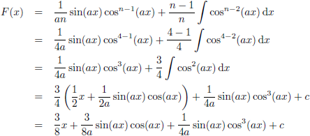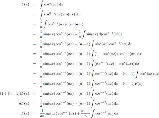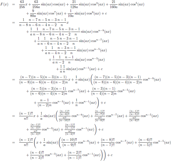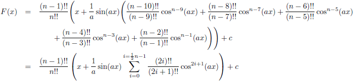 Trefwoorden/keywords: integraal/integral, integreren/integrate, f (x) = cosn (ax) (n = even)