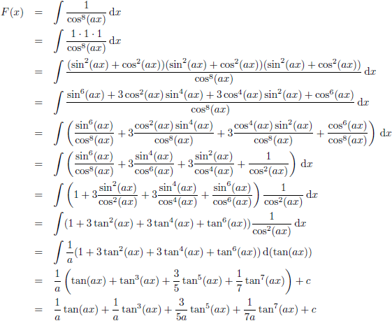 Trefwoorden/keywords: integraal/integral, integreren/integrate, f (x) = 1/cos8 (ax)