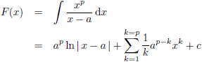Trefwoorden/keywords: integraal/integral, integreren/integrate, f (x) = xp/(x − a)