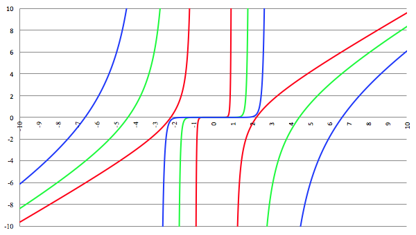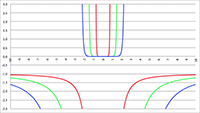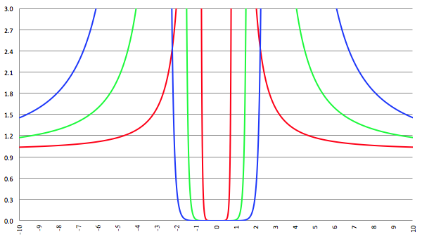 a = 2 (de groene lijn) en a = 3 (de blauwe lijn)