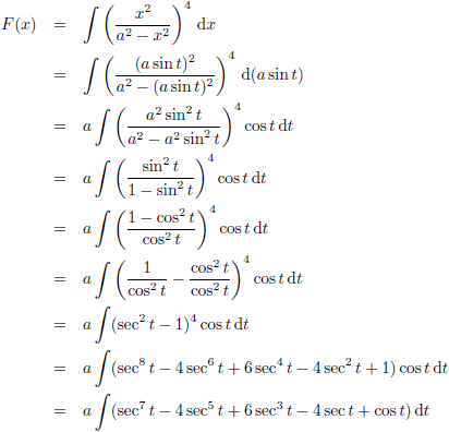Trefwoorden/keywords: integraal/integral, integreren/integrate, f (x) = (x2/(a2 − x2))4
