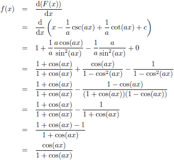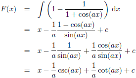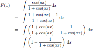 Trefwoorden/keywords: integraal/integral, integreren/integrate, f (x) = cos (ax)/(1 + cos (ax))