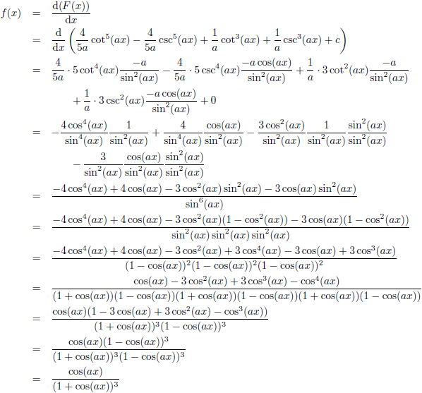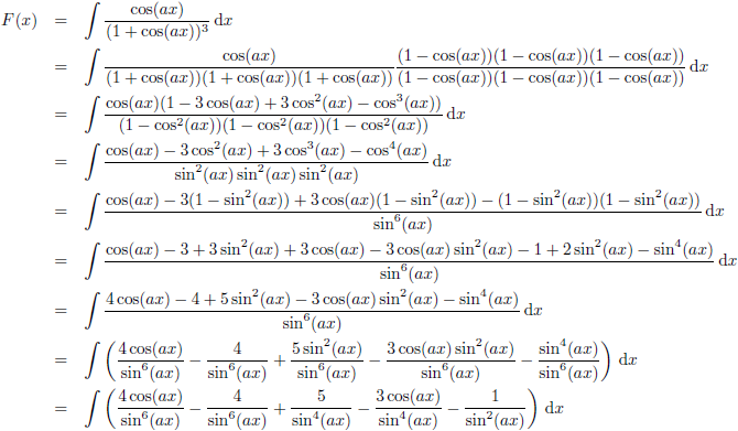 Trefwoorden/keywords: integraal/integral, integreren/integrate, f (x) = cos (ax)/(1 + cos (ax))3