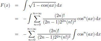 Trefwoorden/keywords: integraal/integral, integreren/integrate, f (x) = (1 − cos (ax))1/2