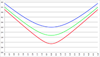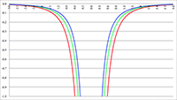 f (x) = x−3/(1 + x2)1/2 (de groene lijn), f (x) = x−4/(1 + x2)1/2 (de paarse lijn),