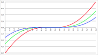 f (x) = x2/(1 + x2)3/2 (de groene lijn), f (x) = x3/(1 + x2)3/2 (de paarse lijn)