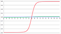 De grafiek van f (x) = 1/(a2 + x2)n voor n = 1 (de rode lijn),