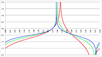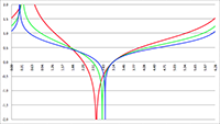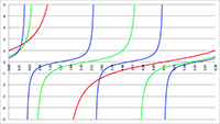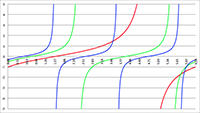 De grafiek van f (x) = 1/(1 + a cos x) voor a = −2 (de lichtblauwe lijn),
