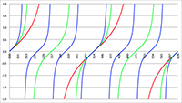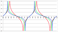 De grafiek van f (x) = 1/(1 + a cos2 x) voor a = −2 (de lichtblauwe lijn),