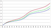 a = 0.8 (de zwarte lijn) en a = 2 (de donkerblauwe lijn)