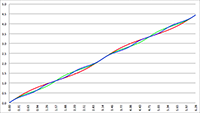 a = 0.8 (de paarse lijn) en a = 2 (de donkergroene lijn)