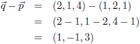 We stellen eerst de parametervoorstelling op van de lijn L door p en q. Als richtingsvector neem ik pq = q − p: