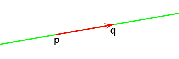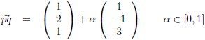 We stellen eerst de parametervoorstelling op van het lijnsegment pq. Als richtingsvector neem ik pq = q − p:
