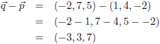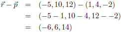 Een alternatieve aanpak was geweest om, nadat ik hierboven de vector pq had bepaald, ook de vector pr te bepalen:Er is eenvoudig in te zien dat:
