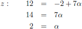 Nu ga ik voor het punt r controleren of het op L ligt door de componenten te vergelijken: