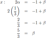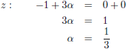 De waarde voor α die volgt uit de vergelijking voor z vullen we in in de vergelijkingen voor x en y: