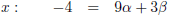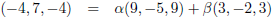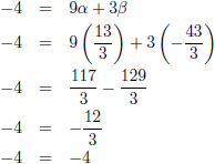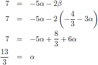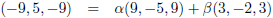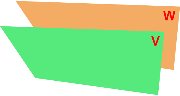 Indien V en W evenwijdig zijn dan zijn de richtingsvectoren afhankelijk van elkaar. Met andere woorden, de richtingsvectoren van het ene vlak zijn te vormen uit de richtingsvectoren van het andere vlak. Er moeten dus een α en β bestaan zodanig dat:Voor de eerste richtingsvector is het vrij simpel in te zien dat dit geldt voor α = −1 en β = 0. Voor de tweede richtingsvector moeten we de vergelijkingen voor x, y en z uitwerken: