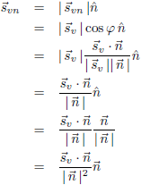 De projectie van de steunvector sv van V op n is svn. Dit is | svn | maal een ‘eenheidsstukje’ van n, dus:We rekenen nu eerst het inwendig product sv ∙ n uit:
