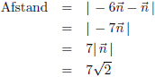 De afstand tussen beide vlakken is de absolute waarde van het verschil van de projecties: