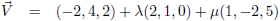 Bepaal een (andere) parametervoorstelling van V, waarbij de steunvector en de beide richtingsvectoren