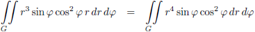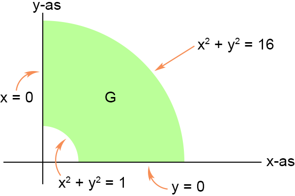 Het integratiegebied G is een deel van een cirkelschijf, zie dit plaatje: