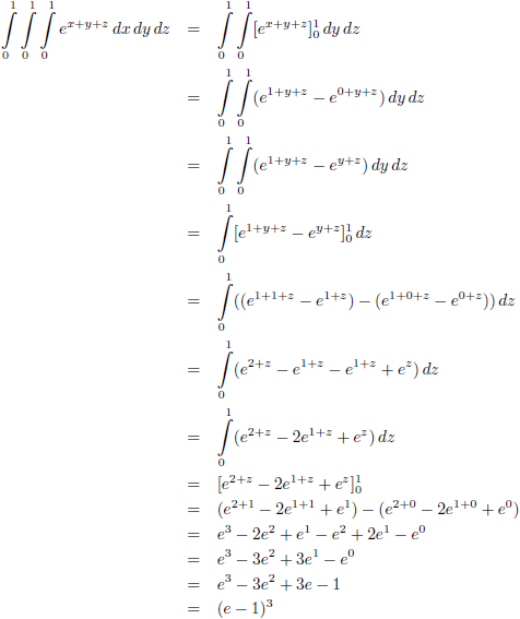 De grafiek van f (x, y, z) = ex + y + z voor z = 1