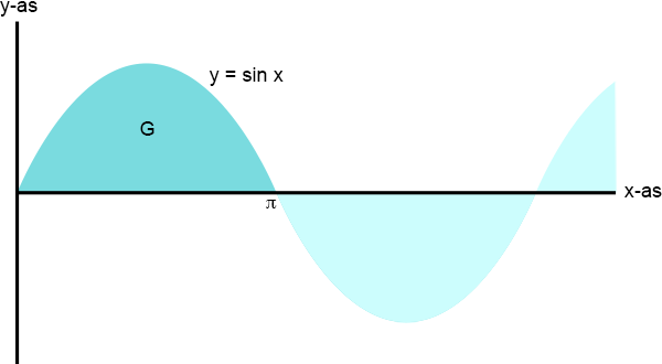 Hierin is G het gebied dat wordt ingesloten door de kromme y = sin x en het interval [0, π] op de x-as.