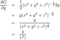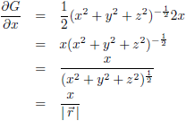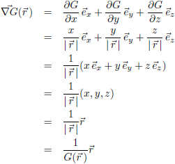 Gegeven het scalarveld G(r) = | r | (waarin met r de plaatsvector (x, y, z) is bedoeld).